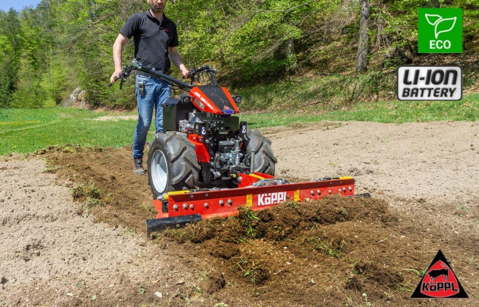 Alle bedieningselementen zijn binnen handbereik en de duwboom is in hoogte en zijdelinks verstelbaar voor een optimale werkpositie. Dankzij de stabiele bouwwijze kan op een helling van 45 graden op een veilige wijze gewerkt worden.